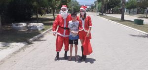 El traje azul quedó debajo y se inundó de rojo PAPÁ NOEL, creando un grato momento que completaron con la entrega de golosinas, gaseosa y galletas.