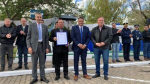 En un acto que se realizó en San Cristóbal, Santa Fe, el Senador Felipe Michlig junto al Diputado Marcelo González acompañaron al intendente Horacio Rigo en el homenaje a los héroes caídos con motivo del hundimiento del Crucero ARA General Belgrano por el submarino británico HMS Conqueror cuando se alejaba de los límites del conflicto.