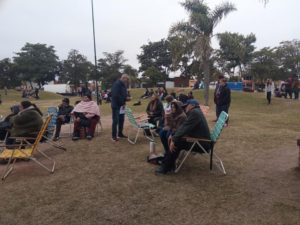 Los vendedores en stands, de promociones escolares que trabajan para el acto de egreso, los artesanos, emprendedores realizaron el movimiento de las estructuras, pero a las 2 horas tuvieron que levantar por el mal tiempo.