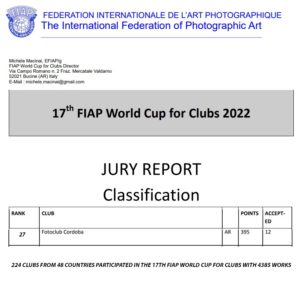 Otro logro fue la participación en la Copa Interclubes de la Federación Internacional de ARTE FOTOGRÁFICO, sobre 224 clubes de 48 países distintos, la presentación de Cravero desde Córdoba ocupó el puesto 27, y el segundo de Argentina y Latinoamérica.