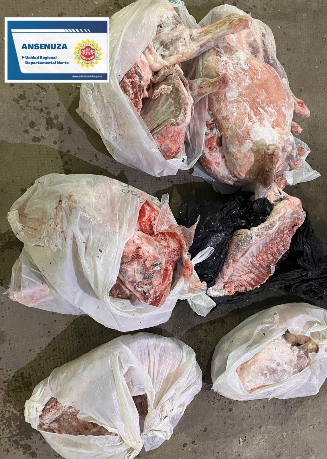 En el lugar, efectivos policiales secuestraron 4 corderos faenados, de aproximadamente 15 kilos, y 4 mitades de corderos.