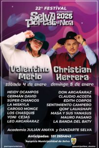 Read Time:9 Second EXPLOTÓ SELVA Debutó el Festival PORTAL del NOA Valentino Merlo el fenómeno del momento Esta noche Cristian Herrera, Edith Corpo, Claudio Acosta entre otros Unas 5 mil personas en la primera noche Compartir Facebook Twitter Pinterest LinkedIn Siguenos en nuestras redes