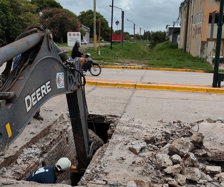 Morteros: realizan trabajos de reparación en calle Eva Perón y Alem